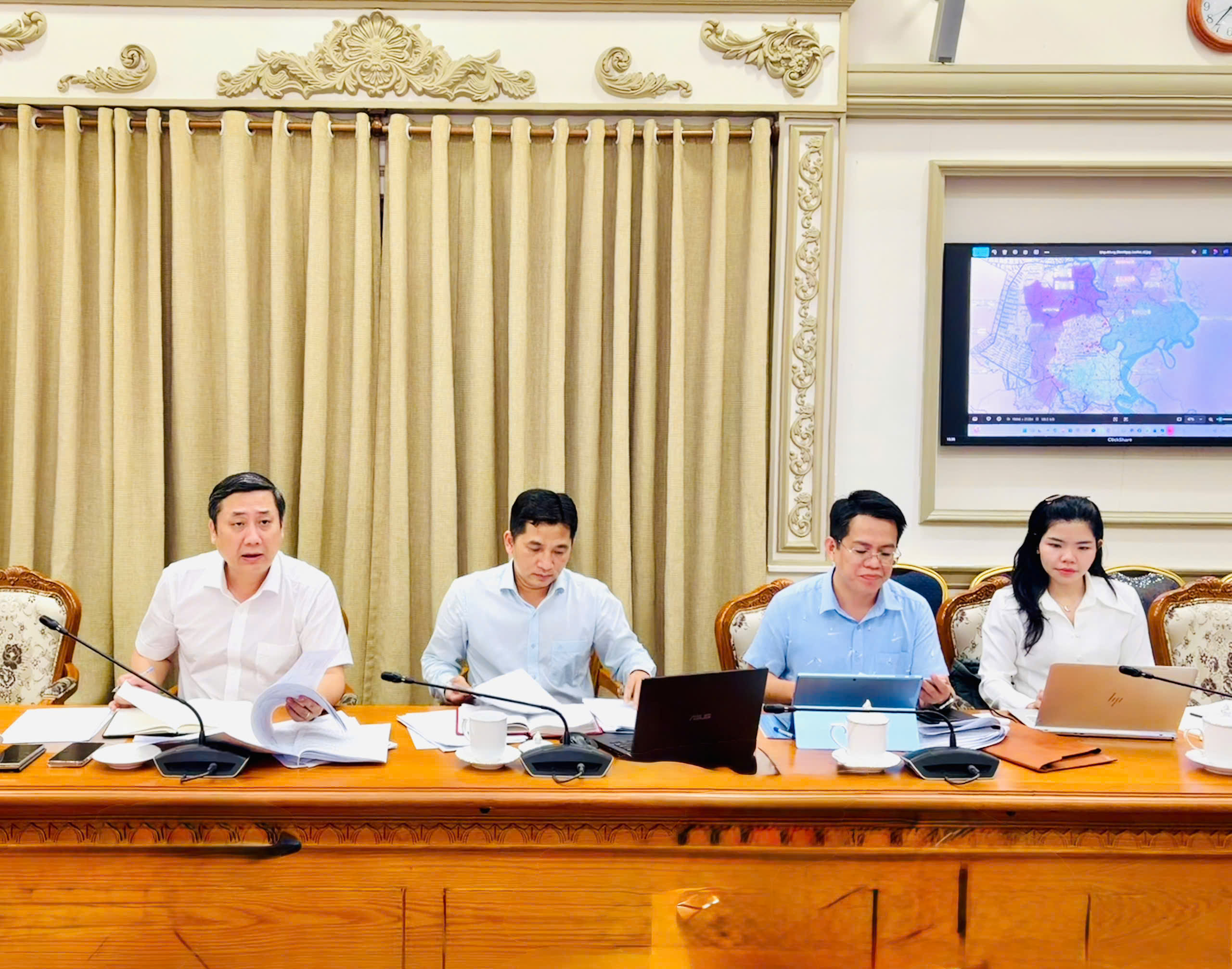 Tại buổi làm việc, Lãnh đạo Sở Xây dựng và các đơn vị liên quan đã báo cáo tổng thể hiện trạng hệ thống thoát nước, các dự án chống ngập đang triển khai, đồng thời chỉ ra nhiều tồn tại mang tính hệ thống. Đáng chú ý, hệ thống hạ tầng thoát nước được đầu tư qua nhiều giai đoạn, thiếu đồng bộ theo lưu vực; các công trình kiểm soát triều chưa hoàn thiện khép kín; tình trạng sụt lún nền đất, mưa cực đoan và triều cường gia tăng đang làm gia tăng nguy cơ ngập sâu, kéo dài. Bên cạnh đó, công tác quản lý còn phân tán giữa các cơ quan, việc điều phối liên ngành chưa thực sự hiệu quả; nguồn lực đầu tư còn hạn chế, chưa đáp ứng yêu cầu thực tiễn; nhiều dự án chậm tiến độ do vướng mắc giải phóng mặt bằng và thủ tục đầu tư.