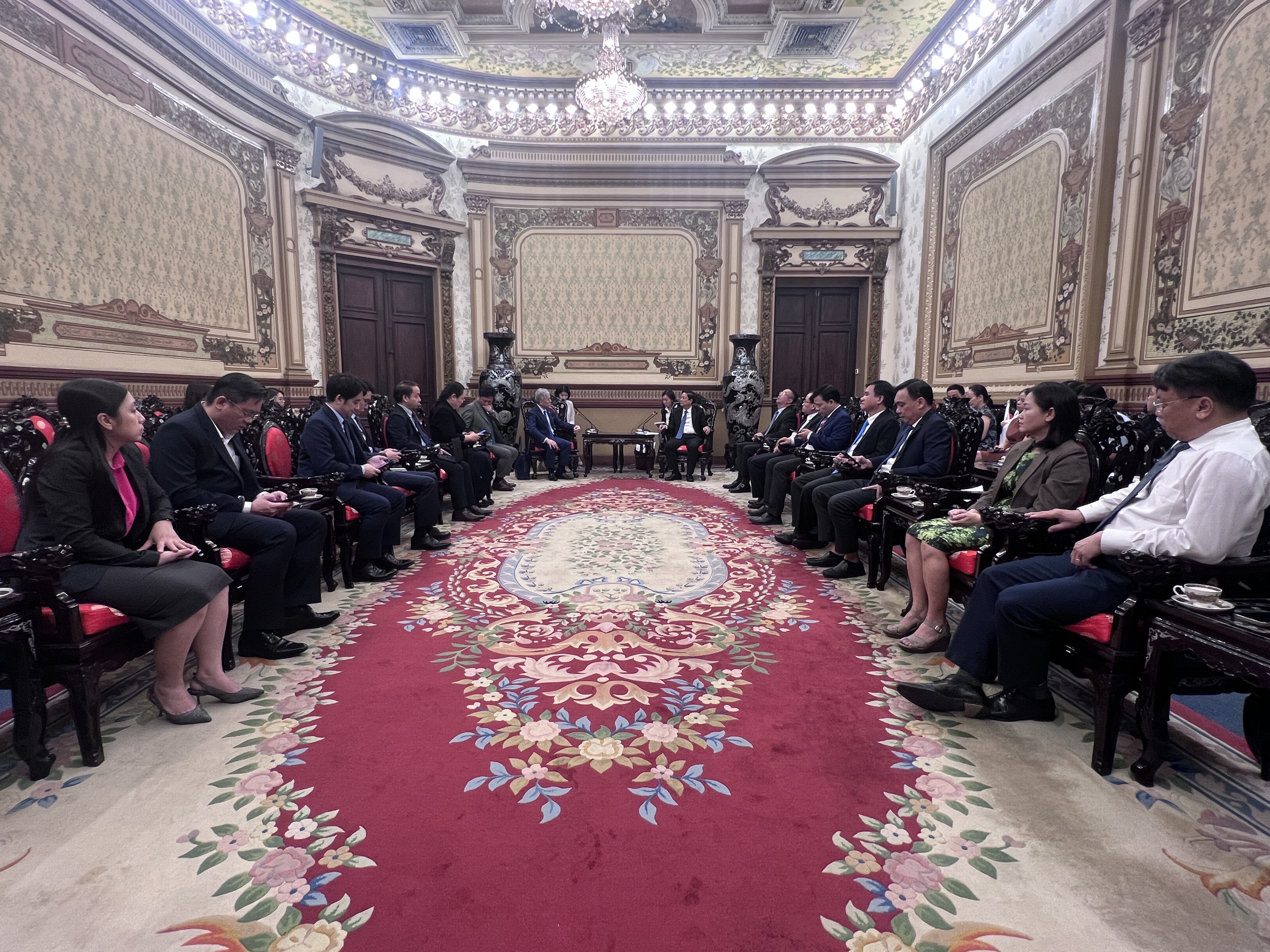 Cùng dự buổi tiếp có đại diện lãnh đạo các Ban của Hội đồng nhân dân Thành phố cùng Lãnh đạo các Sở Ngoại vụ, Sở Xây dựng, Sở Quy hoạch – Kiến trúc, Ban Quản lý Đường sắt đô thị (MAUR) và Tập đoàn Becamex