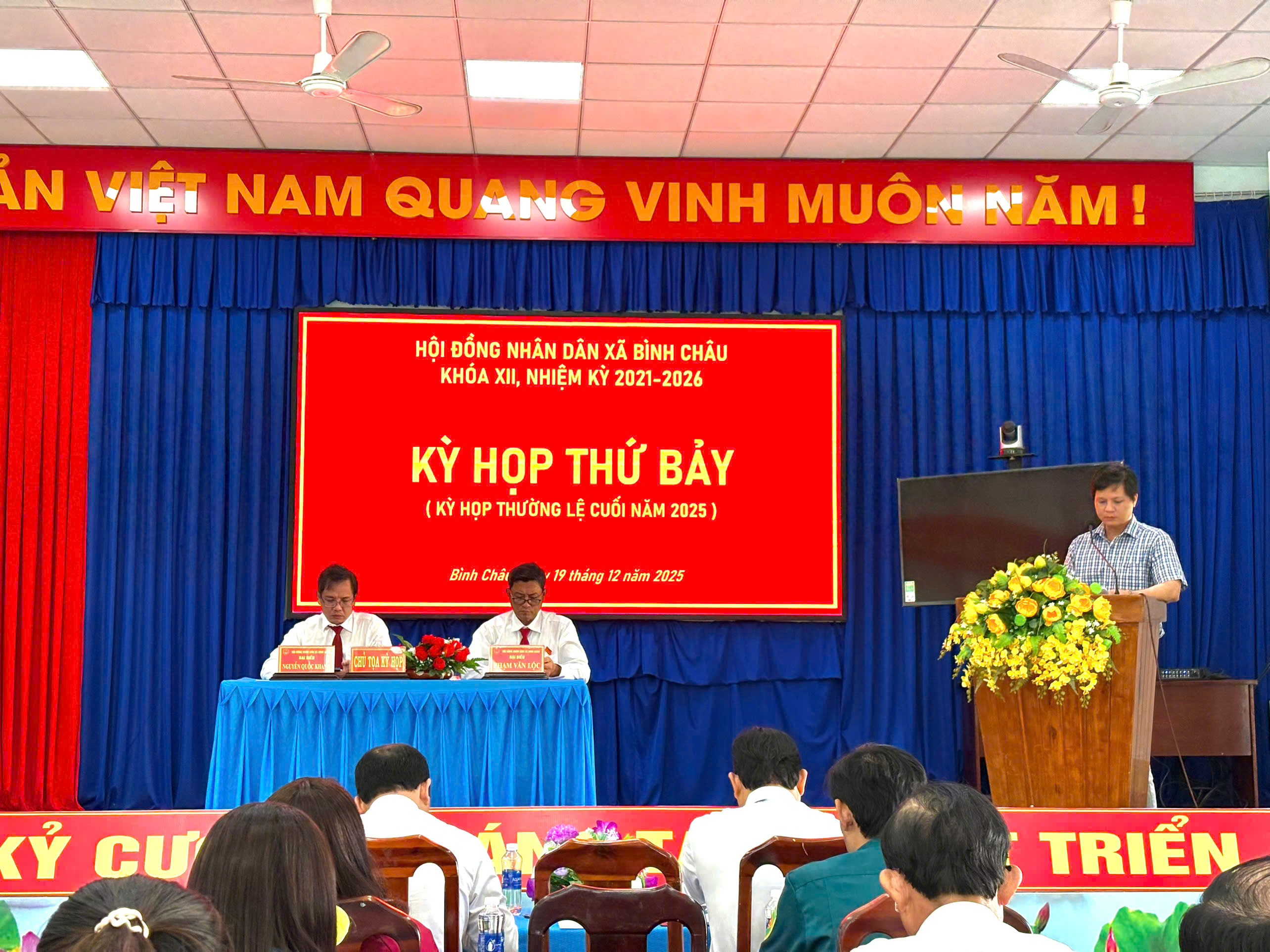 Sáng ngày 19/12/2025, Hội đồng nhân dân xã Bình Châu tổ chức Kỳ họp thứ Bảy (kỳ họp thường lệ cuối năm 2025). Kỳ họp diễn ra trong không khí nghiêm túc, dân chủ, đúng quy định, thể hiện tinh thần đổi mới trong phương thức tổ chức và điều hành hoạt động của HĐND xã.