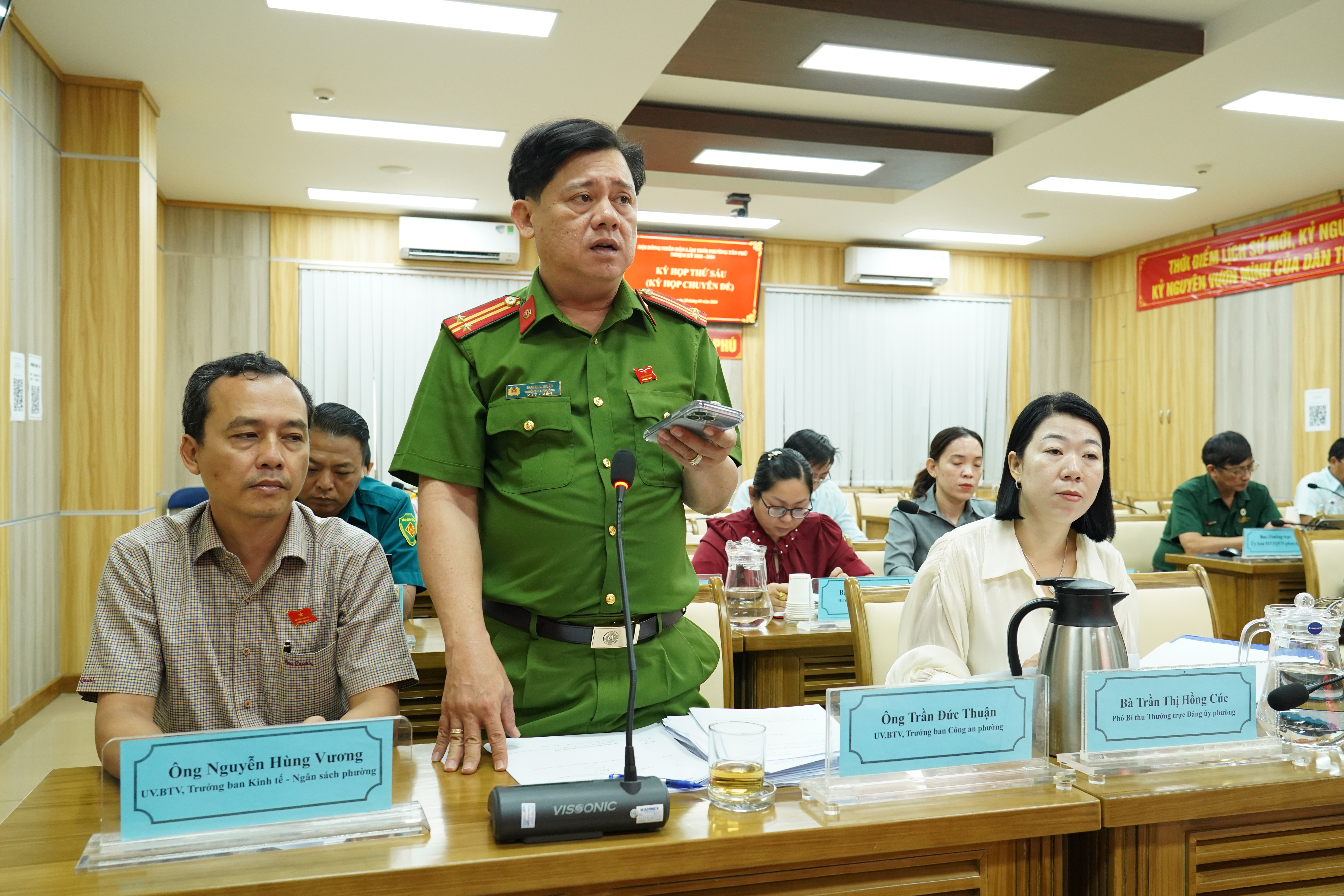 Sau thời gian làm việc nghiêm túc, dân chủ và trách nhiệm, Kỳ họp thứ sáu (Kỳ họp chuyên đề) Hội đồng nhân dân lâm thời phường đã hoàn thành toàn bộ nội dung chương trình đề ra. Với tinh thần làm việc khẩn trương và trách nhiệm cao, các đại biểu đã xem xét, tập trung nghiên cứu và thảo luận các tờ trình của UBND phường và Báo cáo thẩm tra của Ban Kinh tế - Ngân sách HĐND phường, các nghị quyết quan trọng liên quan đến tình hình phát triển kinh tế - văn hóa - xã hội năm 2026 cũng như các nội dung thuộc thẩm quyền của Hội đồng nhân dân phường và nhất trí biểu quyết thông qua đối với các Nghị quyết quan trọng: