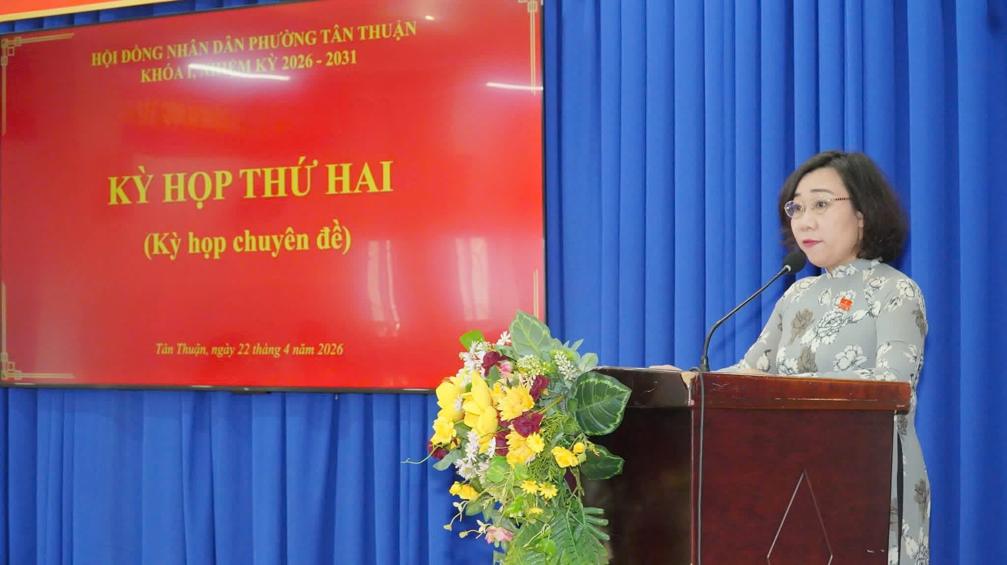 Chiều ngày 22 tháng 4 năm 2026, Hội đồng nhân dân (HĐND) phường Tân Thuận tổ chức kỳ họp thứ hai (kỳ họp chuyên đề) nhằm quyết định kế hoạch phát triển kinh tế - xã hội giai đoạn 2026 - 2030 và ban hành quy chế làm việc của HĐND phường nhiệm kỳ 2026 - 2031. Đây là kỳ họp đầu tiên HĐND phường khóa I thực hiện điều hành qua ứng dụng phần mềm kỳ họp.