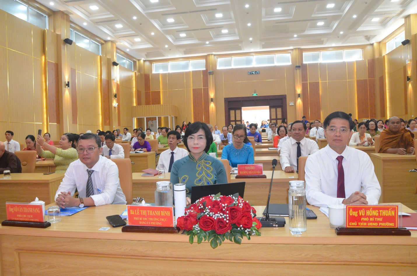 Kỳ họp vinh dự được đón tiếp các đồng chí lãnh đạo cùng toàn thể các vị đại biểu HĐND phường: đồng chí Lê Thị Thanh Bình, Phó Bí thư Thường trực Đảng ủy phường; đồng chí Vũ Hồng Thuấn, Phó Bí thư Đảng ủy, Chủ tịch UBND phường; đồng chí Vũ Đăng Khoa, Chủ tịch Ủy ban MTTQ Việt Nam phường; đồng chí Võ Văn Thành Sang và đồng chí Trần Thị Bích Vân, Phó Chủ tịch UBND phường.