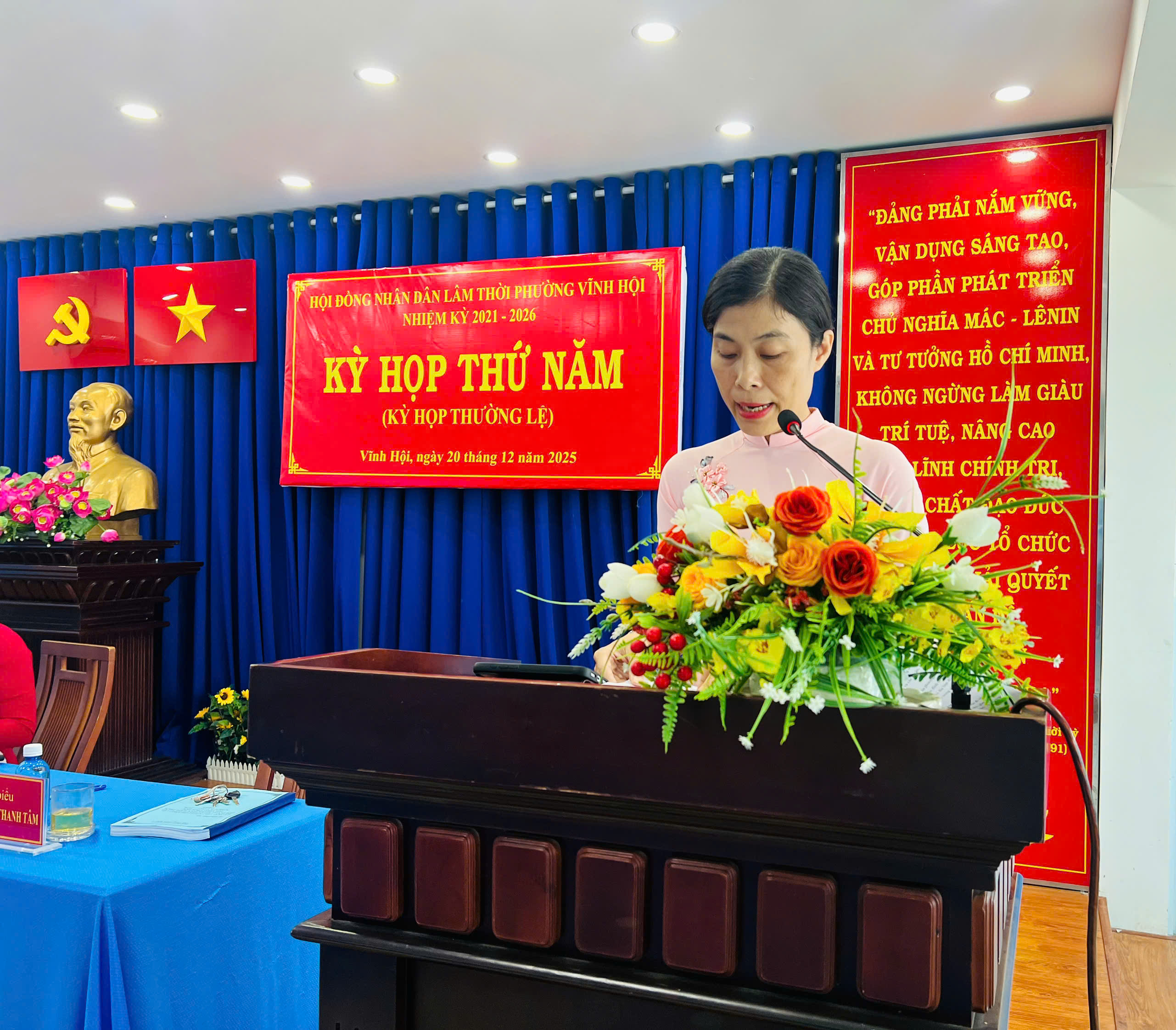 Ngày 20/12/2025, Hội đồng nhân dân lâm thời phường Vĩnh Hội, nhiệm kỳ 2021 – 2026 đã tổ chức thành công Kỳ họp thứ năm (kỳ họp thường lệ) nhằm đánh giá kết quả thực hiện nhiệm vụ năm 2025 và thông qua các chỉ tiêu phát triển kinh tế - xã hội quan trọng cho năm 2026.