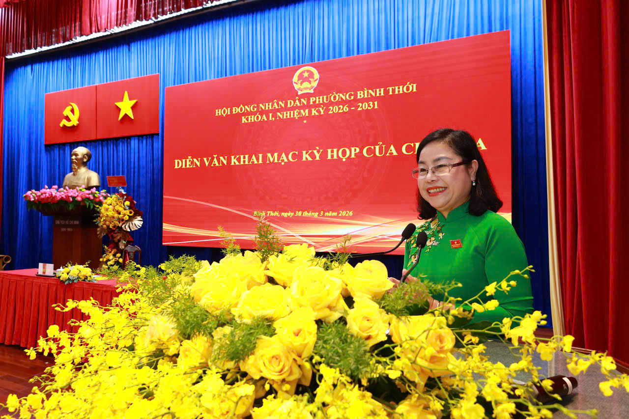Chiều 30-3, tại Trung tâm Bồi dưỡng Chính trị phường Bình Thới, Hội đồng nhân dân (HĐND) phường Bình Thới khóa I, nhiệm kỳ 2026–2031, khai mạc trọng thể kỳ họp thứ nhất dưới sự điều hành của Chủ tọa kỳ họp Trần Hải Yến, Bí thư Đảng ủy, Chủ tịch HĐND phường nhiệm kỳ 2021-2026.