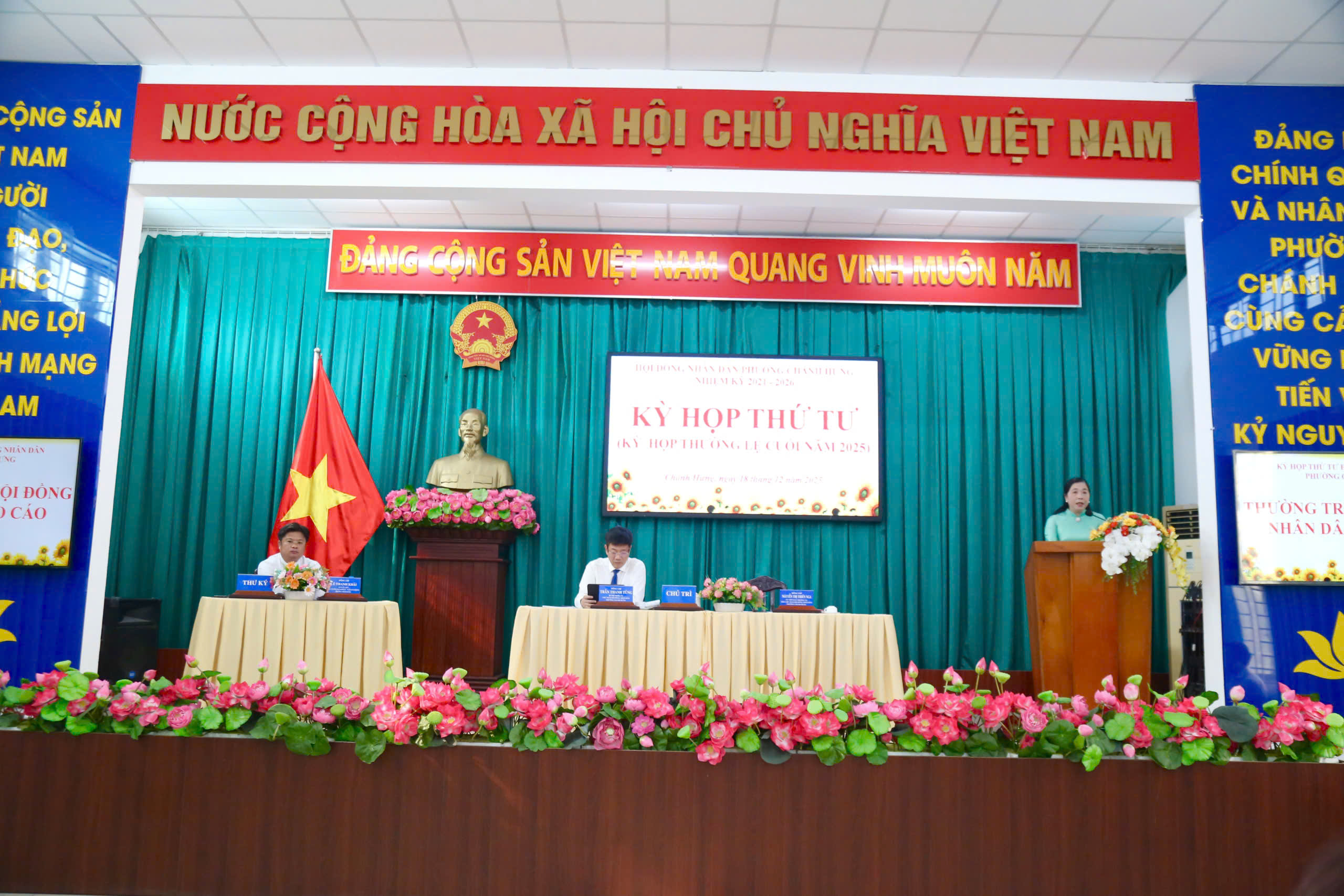 Chiều ngày 18/12/2025, Hội đồng nhân dân phường Chánh Hưng tổ chức Kỳ họp thứ tư, nhiệm kỳ 2021 - 2026. Đồng chí Trần Thanh Tùng, Bí thư Đảng ủy, Chủ tịch Hội đồng nhân dân phường và đồng chí Nguyễn Thị Thiên Nga, Ủy viên ban Thường vụ, Phó Chủ tịch Hội đồng nhân dân phường chủ tọa kỳ họp.