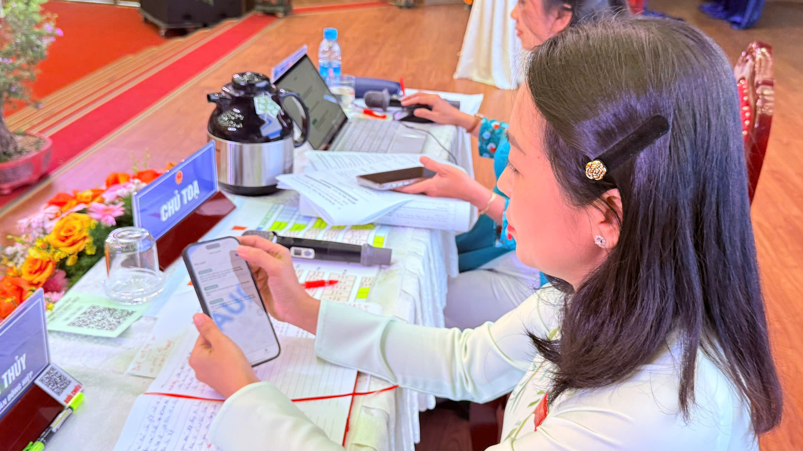 ( Hình 2,3,4 hình ảnh đại biểu ứng dụng phần mềm kỳ họp)