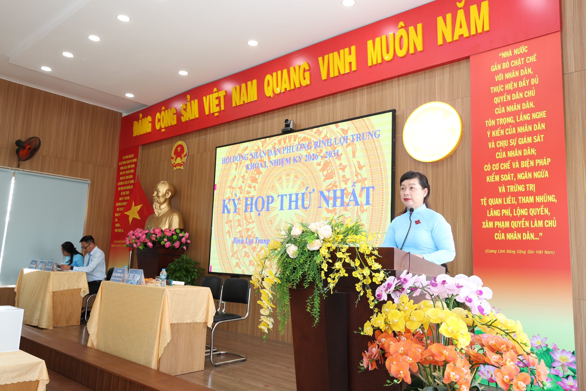 Ngày 30/3/2026, kỳ họp thứ Nhất HĐND phường Bình Lợi Trung khóa I nhiệm kỳ 2026–2031 đã diễn ra một cách trang trọng, đúng quy trình, đảm bảo dân chủ và đúng luật.