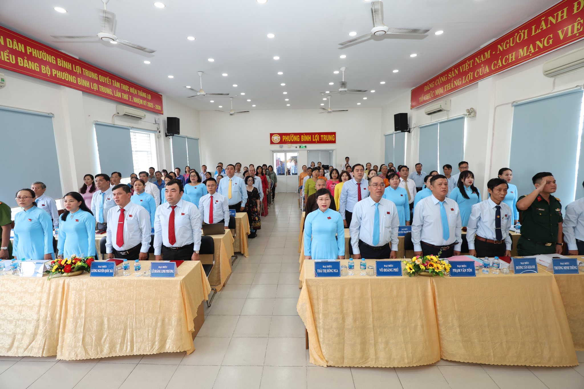Tham dự kỳ họp các có đồng chí: Thái Thị Hồng Nga - Bí thư Đảng ủy, Chủ tịch HĐND phường; Võ Hoàng Phú - Phó Bí thư thường trực Đảng ủy phường; Lê Hoàng Linh Phương - Phó Bí thư Đảng ủy, Chủ tịch UBND phường; Võ Thị Phương Uyên - Ủy viên BTV Đảng ủy, Chủ tịch UBMTTQ VN phường; các đồng chí Ủy viên Ban Thường vụ Đảng ủy, Thường trực HĐND, Ủy ban nhân dân phường cùng 28 đại biểu HĐND phường Bình Lợi Trung Khóa I, đại diện lãnh đạo Ban Xây dựng Đảng, Văn phòng Đảng ủy, UBKT Đảng ủy, các phòng ban chuyên môn UBND phường, Trung tâm Phục vụ hành chính công, Trung tâm Cung ứng dịch vụ công, BQL Đầu tư xây dựng công trình, Trạm y tế, trường học, các đoàn thể, khu phố trên địa bàn phường.