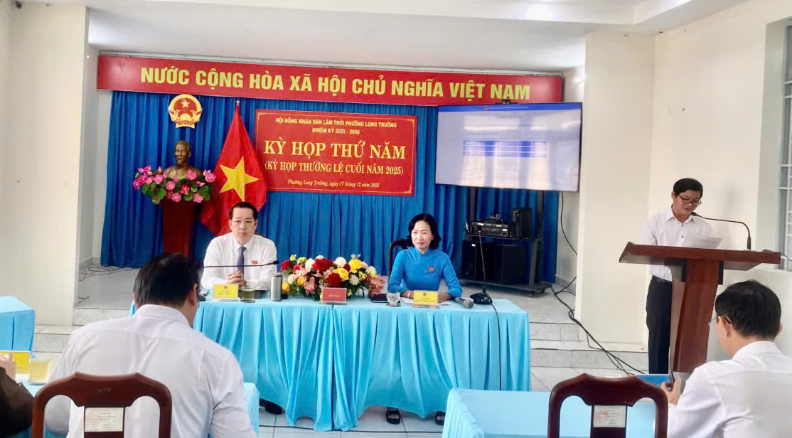 Ngày 17/12/2025, Hội đồng nhân dân (HĐND) lâm thời phường Long Trường, nhiệm kỳ 2021 – 2026 đã tổ chức kỳ họp thứ năm (kỳ họp thường lệ cuối năm 2025). Kỳ họp diễn ra trong không khí nghiêm túc, dân chủ, trách nhiệm, thể hiện tinh thần đổi mới, hiệu quả và sự thống nhất cao của các đại biểu, qua đó định hướng những nhiệm vụ trọng tâm cho giai đoạn phát triển tiếp theo của địa phương.