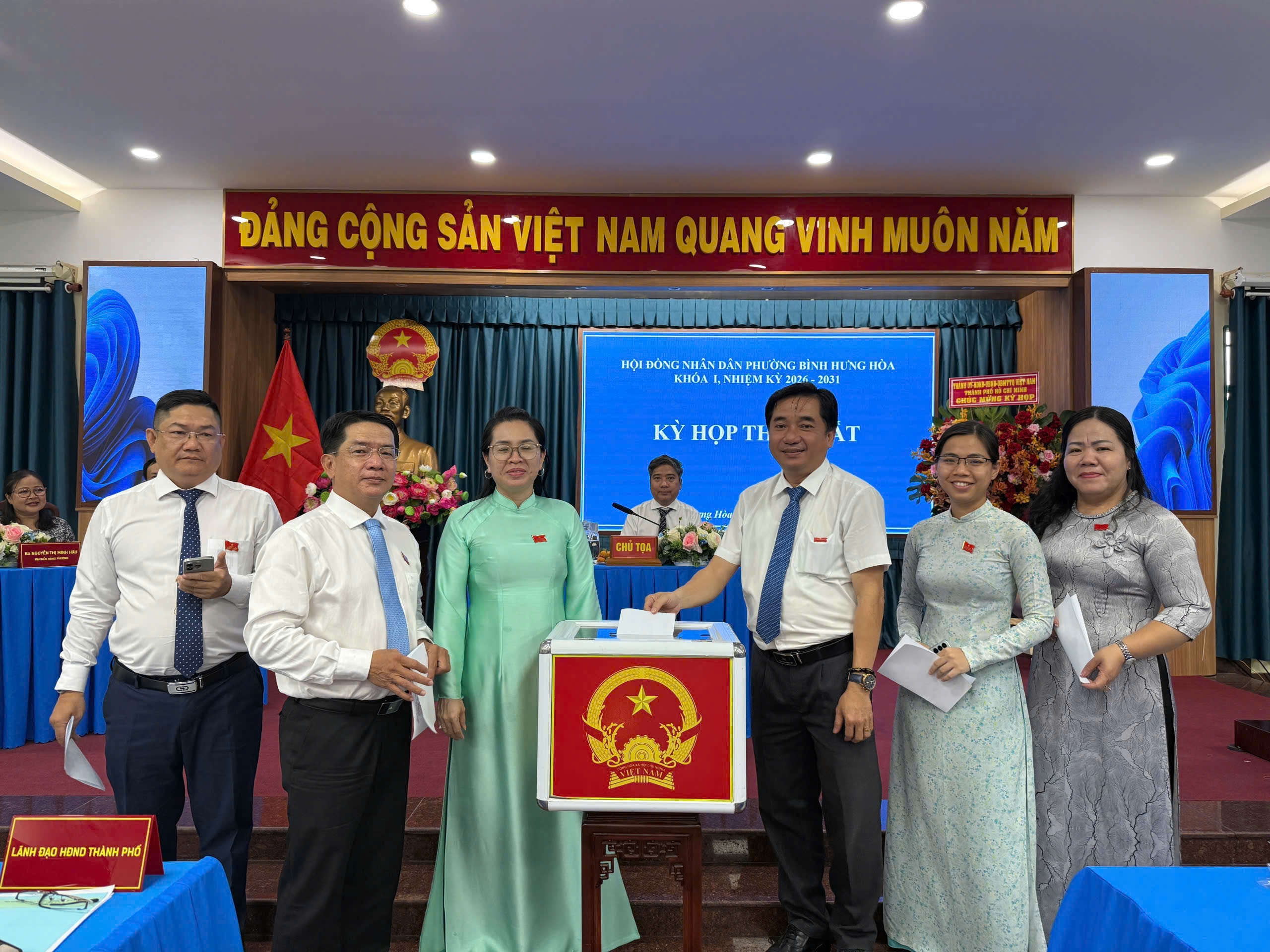 Chiều ngày 30/3, Hội đồng nhân dân phường Bình Hưng Hòa khóa I, nhiệm kỳ 2026 – 2031 đã tổ chức Kỳ họp thứ nhất xem xét, quyết định các nội dung quan trọng theo quy định của pháp luật, đặc biệt là kiện toàn bộ máy chính quyền địa phương sau cuộc bầu cử đại biểu Quốc hội khóa XVI và đại biểu HĐND các cấp nhiệm kỳ 2026 – 2031.