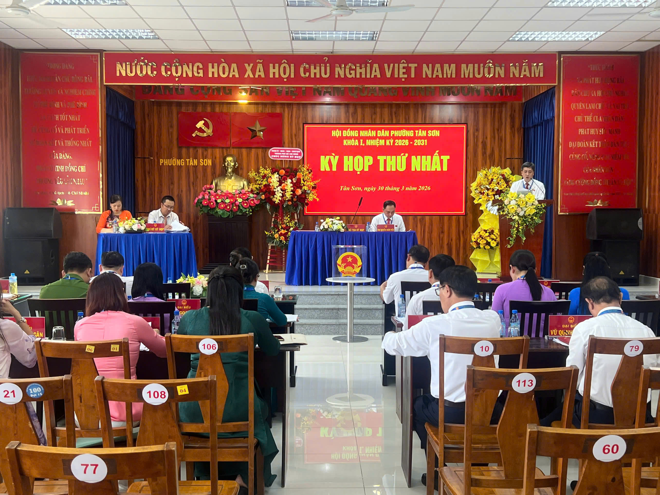 Chiều ngày 30 tháng 3 năm 2026, tại Hội trường Ủy ban nhân dân phường Tân Sơn, Hội đồng nhân dân phường Tân Sơn đã long trọng tổ chức Kỳ họp thứ nhất, khóa I, nhiệm kỳ 2026 – 2031 theo đúng quy định của pháp luật. Kỳ họp có sự tham dự đầy đủ của 22/22 đại biểu Hội đồng nhân dân phường, đảm bảo điều kiện tiến hành với tinh thần nghiêm túc, dân chủ và trách nhiệm.