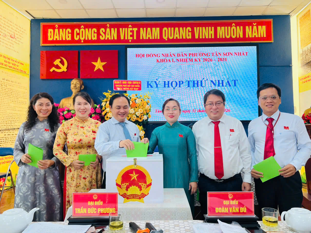 Về bộ máy Ủy ban nhân dân, kỳ họp đã bầu đồng chí Đoàn Văn Đủ giữ chức Chủ tịch Ủy ban nhân dân phường; đồng chí Nguyễn Thành Danh và đồng chí Lâm Việt Thảo giữ chức Phó Chủ tịch Ủy ban nhân dân phường và các Ủy viên Ủy ban nhân dân phường nhiệm kỳ 2026 - 2031. Kỳ họp cũng đã nghe báo cáo tổng hợp ý kiến, kiến nghị của cử tri trong các buổi tiếp xúc với người ứng cử đại biểu Hội đồng nhân dân phường. Qua đó thể hiện sự quan tâm, kỳ vọng của Nhân dân đối với đội ngũ đại biểu và chính quyền địa phương trong nhiệm kỳ mới.