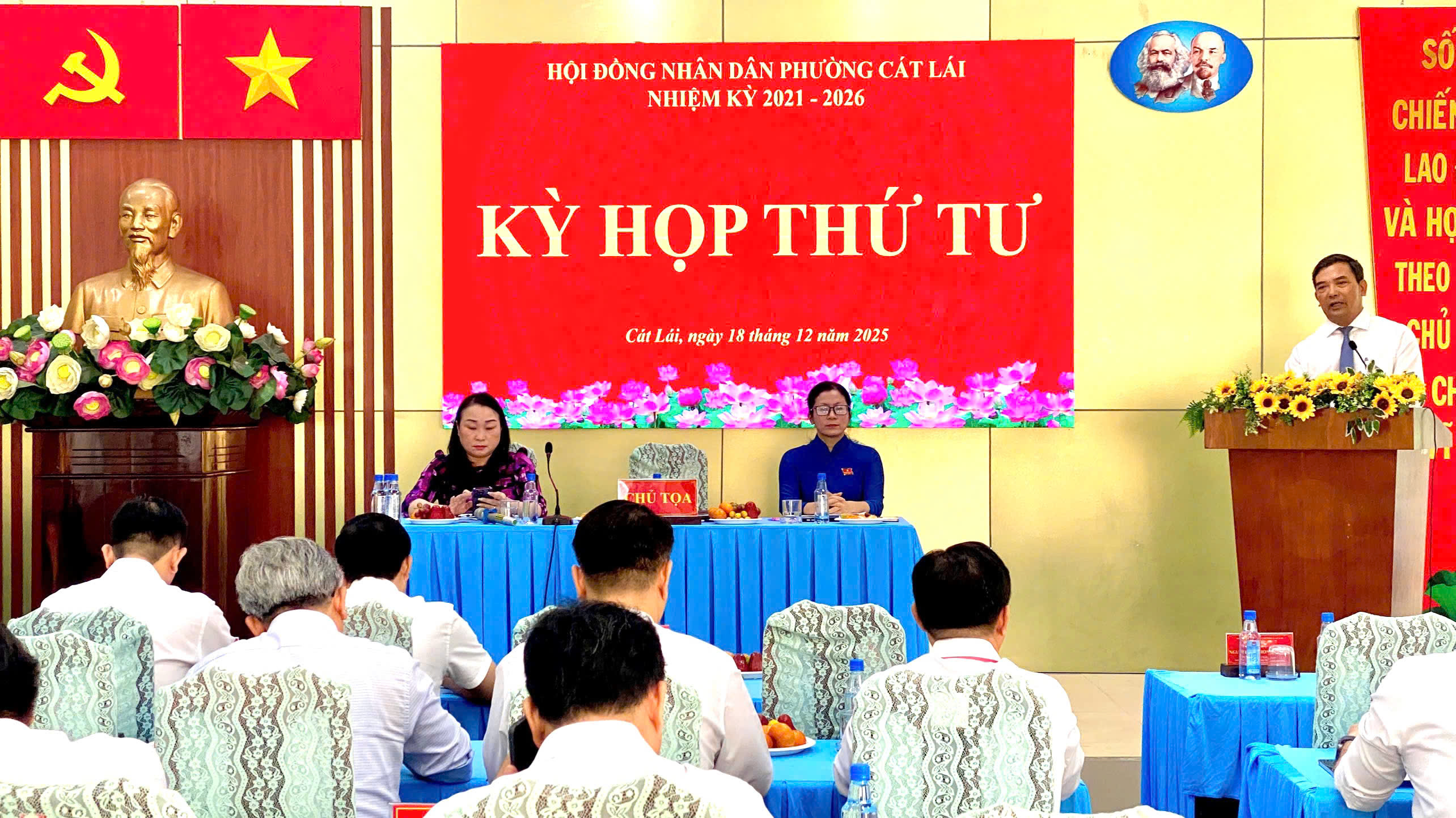 Ngày 18/12/2025, Hội đồng nhân dân phường Cát Lái đã đã tổ chức Kỳ họp thứ tư (kỳ họp thường lệ cuối năm 2025) nhằm đánh giá toàn diện tình hình thực hiện nhiệm vụ phát triển kinh tế – xã hội, quốc phòng – an ninh năm 2025 và quyết định các nội dung quan trọng cho năm 2026. Hội nghị được diễn ra trong không khí trang trọng, nghiêm túc và trách nhiệm cao tại Hội trường A - trụ sở Đảng ủy - Hội đồng nhân dân phường Cát Lái.