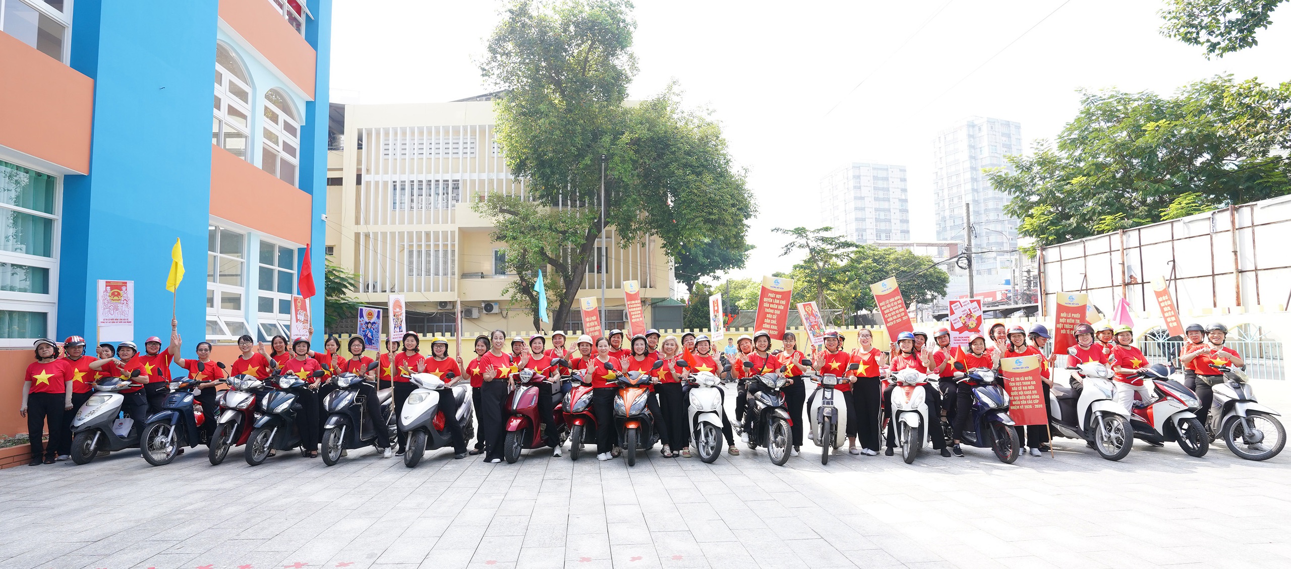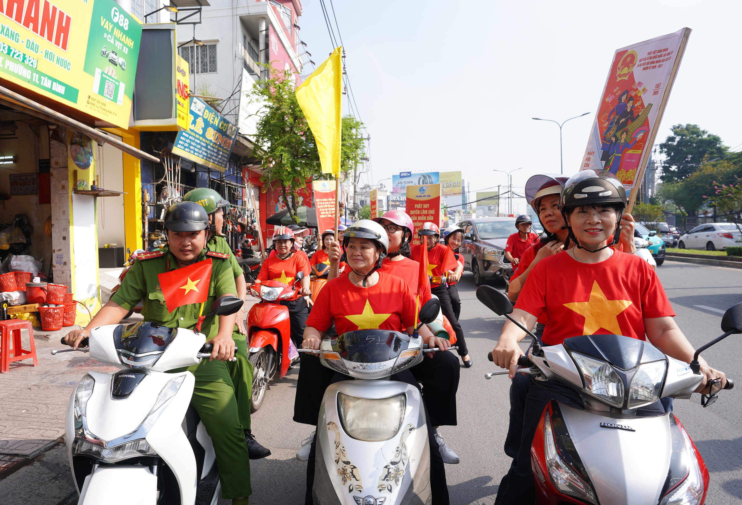 Ngay sau phần đồng diễn, cán bộ, hội viên phụ nữ tham gia diễu hành xe máy tuyên truyền trên các tuyến đường lớn của địa bàn phường như: Âu Cơ - Đồng Đen - Trường Chinh - Lạc Long Quân. Đoàn diễu hành mang theo cờ cầm tay, băng rôn, khẩu hiệu tuyên truyền cùng loa phát thanh, tạo nên hình ảnh sôi nổi, thu hút sự quan tâm của người dân dọc các tuyến đường.