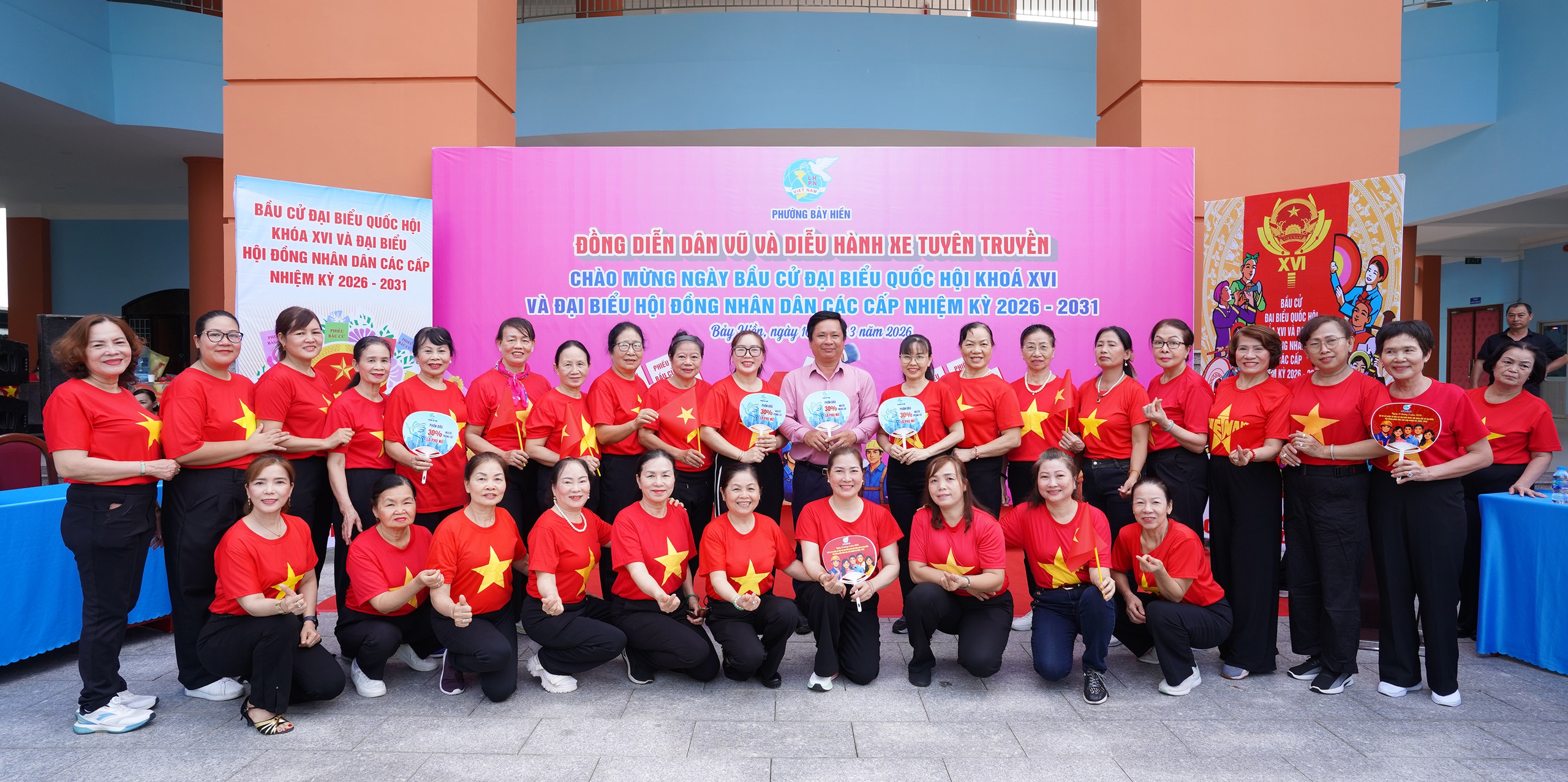 Hội LHPN phường Bảy Hiền vừa tổ chức chương trình đồng diễn dân vũ kết hợp diễu hành xe máy nhằm phát huy vai trò của phụ nữ trong tuyên truyền, vận động cử tri thực hiện quyền và nghĩa vụ công dân, chào mừng ngày hội lớn của toàn dân - cuộc bầu cử đại biểu Quốc hội khóa XVI và đại biểu HĐND các cấp nhiệm kỳ 2026 - 2031.