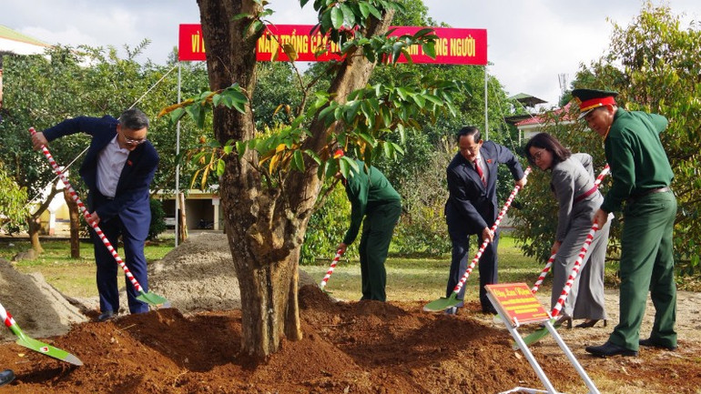 Phó Chủ tịch Quốc hội Trần Quang Phương trồng cây lưu niệm tại Bộ Chỉ huy quân sự tỉnh Đắk Lắk