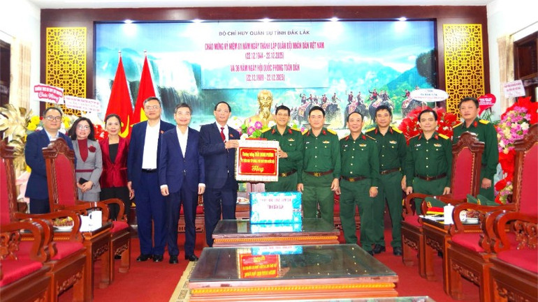 Tại buổi làm việc, Phó Chủ tịch Quốc hội Trần Quang Phương gửi lời chúc mừng tốt đẹp nhất tới cán bộ, chiến sĩ lực lượng vũ trang tỉnh Đắk Lắk nhân dịp kỷ niệm 81 năm Ngày thành lập Quân đội nhân dân Việt Nam (22/12/1944-22/12/2025) và 36 năm Ngày hội Quốc phòng toàn dân (22/12/1989-22/12/2025).