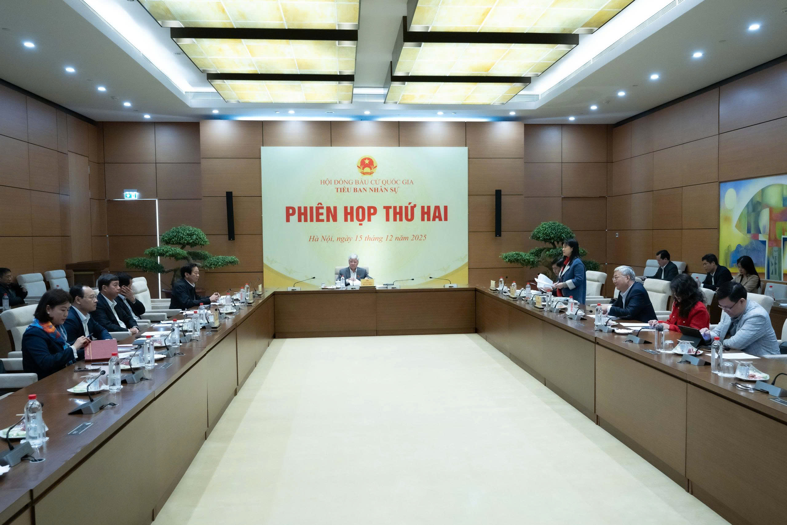 Căn cứ nhiệm vụ của Hội đồng Bầu cử quốc gia giao, để chuẩn bị cho nội dung trình Hội đồng Bầu cử quốc gia ấn định và công bố số đơn vị bầu cử đại biểu Quốc hội, danh sách các đơn vị bầu cử và số lượng đại biểu Quốc hội được bầu ở mỗi đơn vị bầu cử các tỉnh, thành phố, phân bổ ứng cử viên Trung ương về địa phương ứng cử đại biểu Quốc hội khóa XVI; thực hiện quy chế làm việc và chương trình công tác, ngày 15/12, Tiểu ban Nhân sự họp Phiên họp thứ Hai.