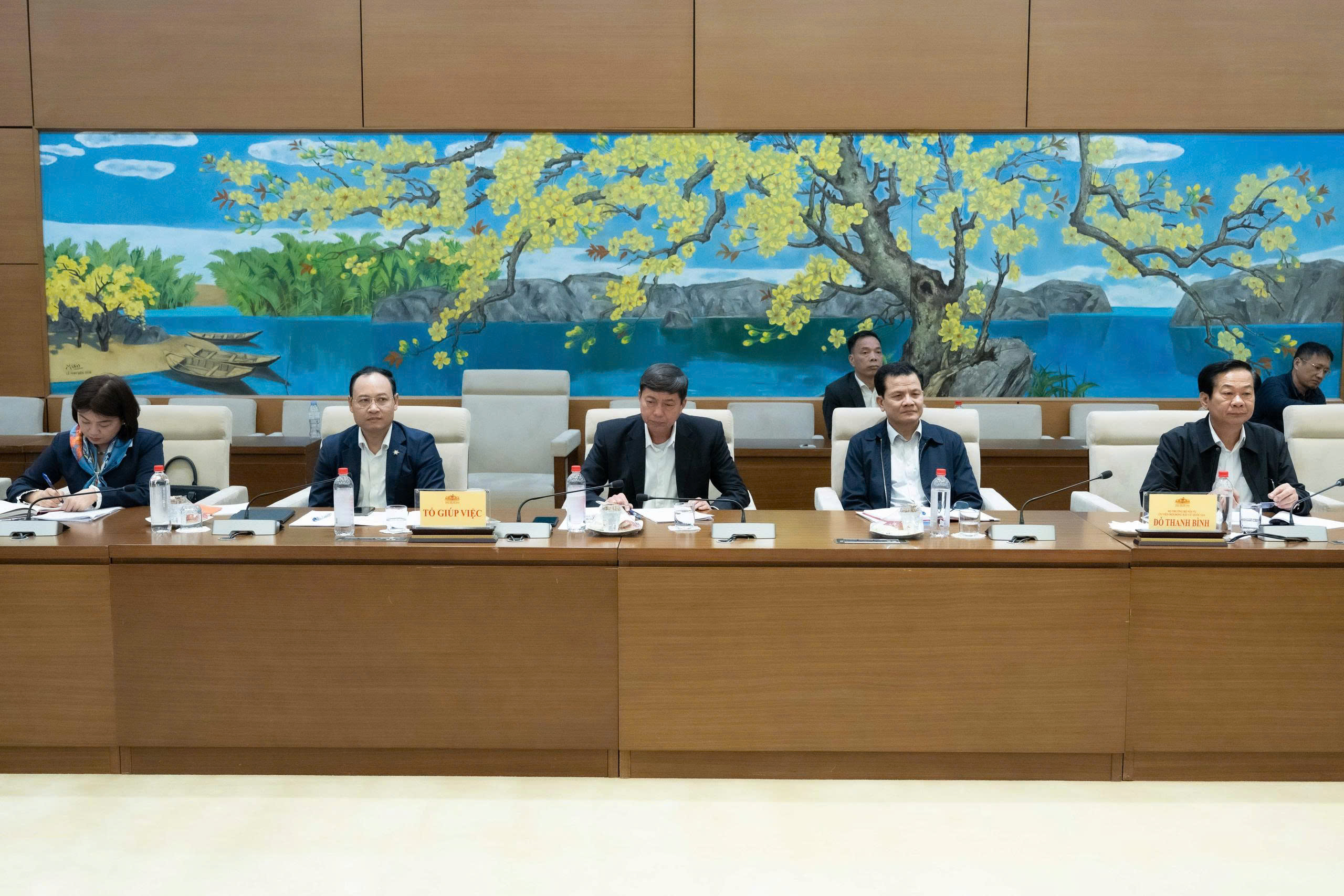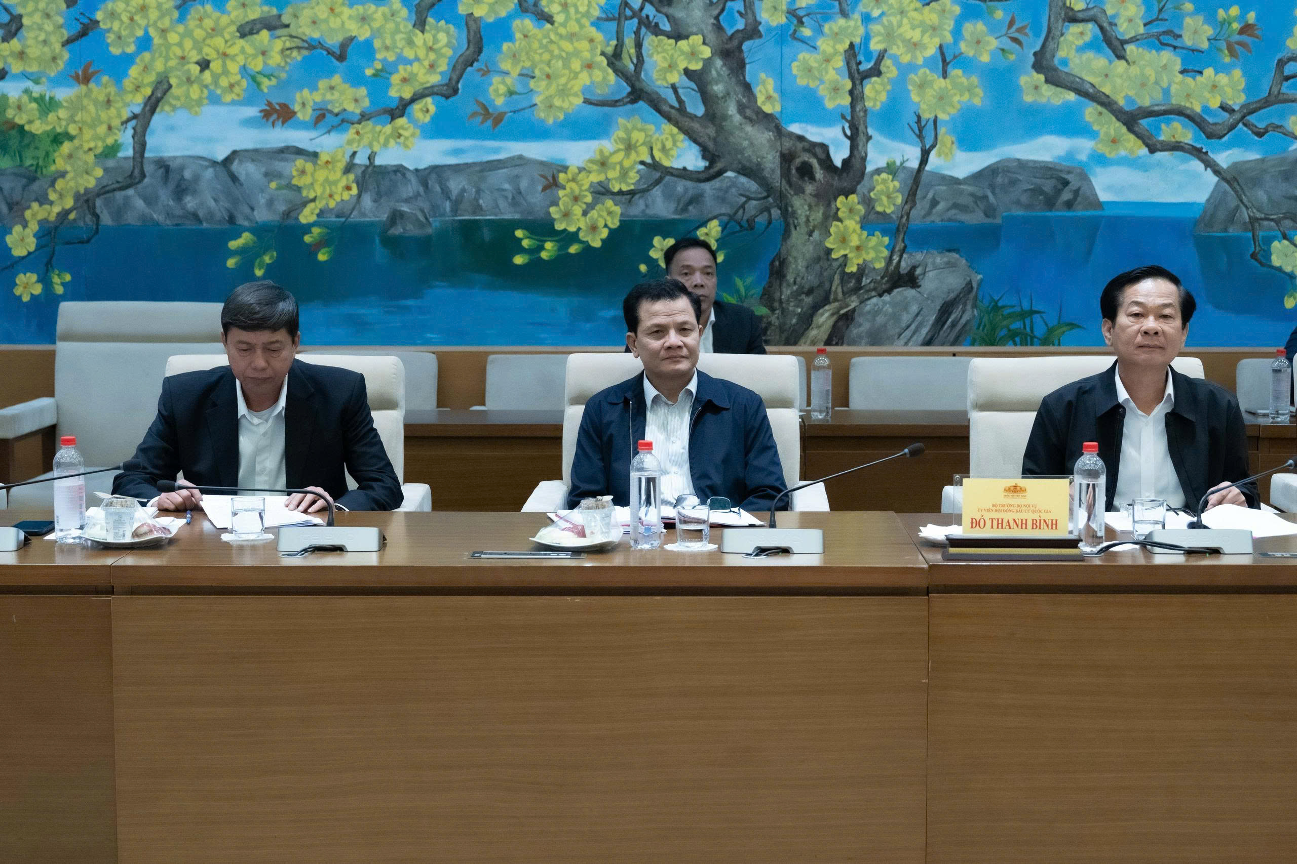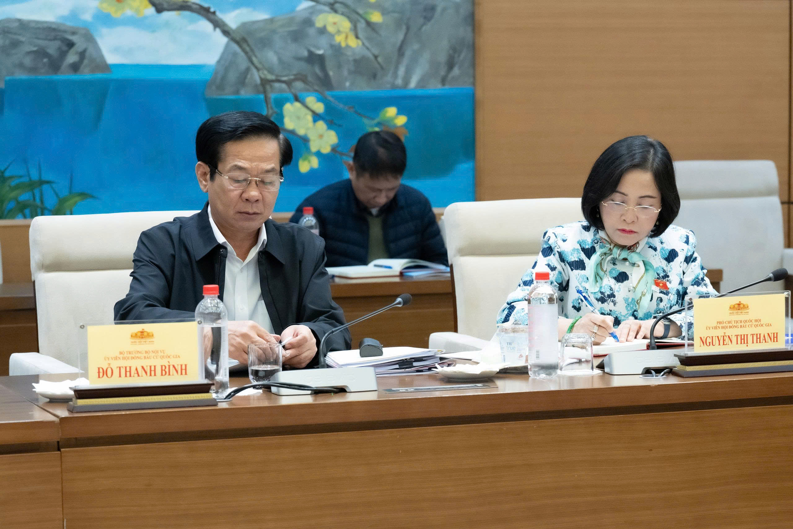 Phó Chủ tịch Quốc hội Nguyễn Thị Thanh, Ủy viên Hội đồng Bầu cử quốc gia; Bộ trưởng Bộ Nội vụ Đỗ Thanh Bình, Ủy viên Hội đồng Bầu cử quốc gia, Phó Trưởng Tiểu ban nhân sự tham dự Phiên họp