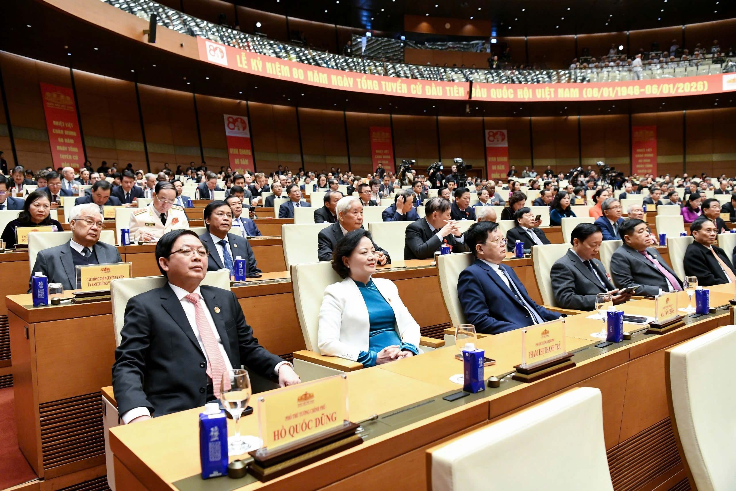 Nhân dịp năm mới 2026 và chuẩn bị đón Xuân Bính Ngọ, tôi xin chúc các đồng chí, quý vị đại biểu, đồng bào, chiến sĩ và bạn bè quốc tế mạnh khỏe, hạnh phúc, thành công; chúc Quốc hội Việt Nam tiếp tục phát triển vững mạnh, xứng đáng với niềm tin yêu của Đảng, Nhà nước và nhân dân.