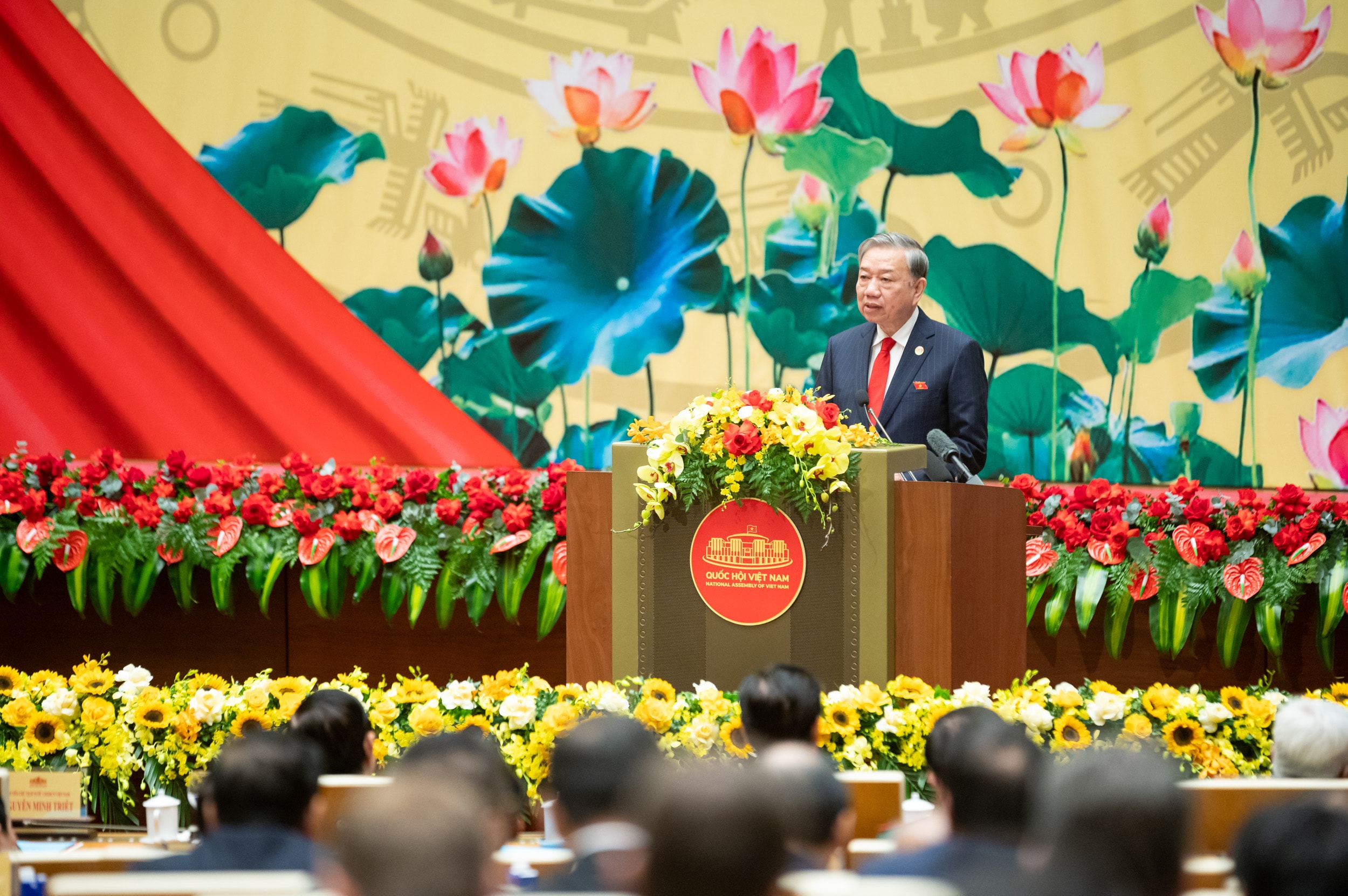 Trong bối cảnh đó, Quốc hội cần tiếp tục phát huy truyền thống 80 năm vẻ vang, đi trước một bước về thể chế, dũng cảm quyết định những vấn đề khó, những việc mới, những lĩnh vực chưa có tiền lệ; mở đường cho đổi mới sáng tạo, cho phát triển nhanh và bền vững đất nước. Tôi đề nghị Quốc hội cần tiếp tục một số định hướng sau:
