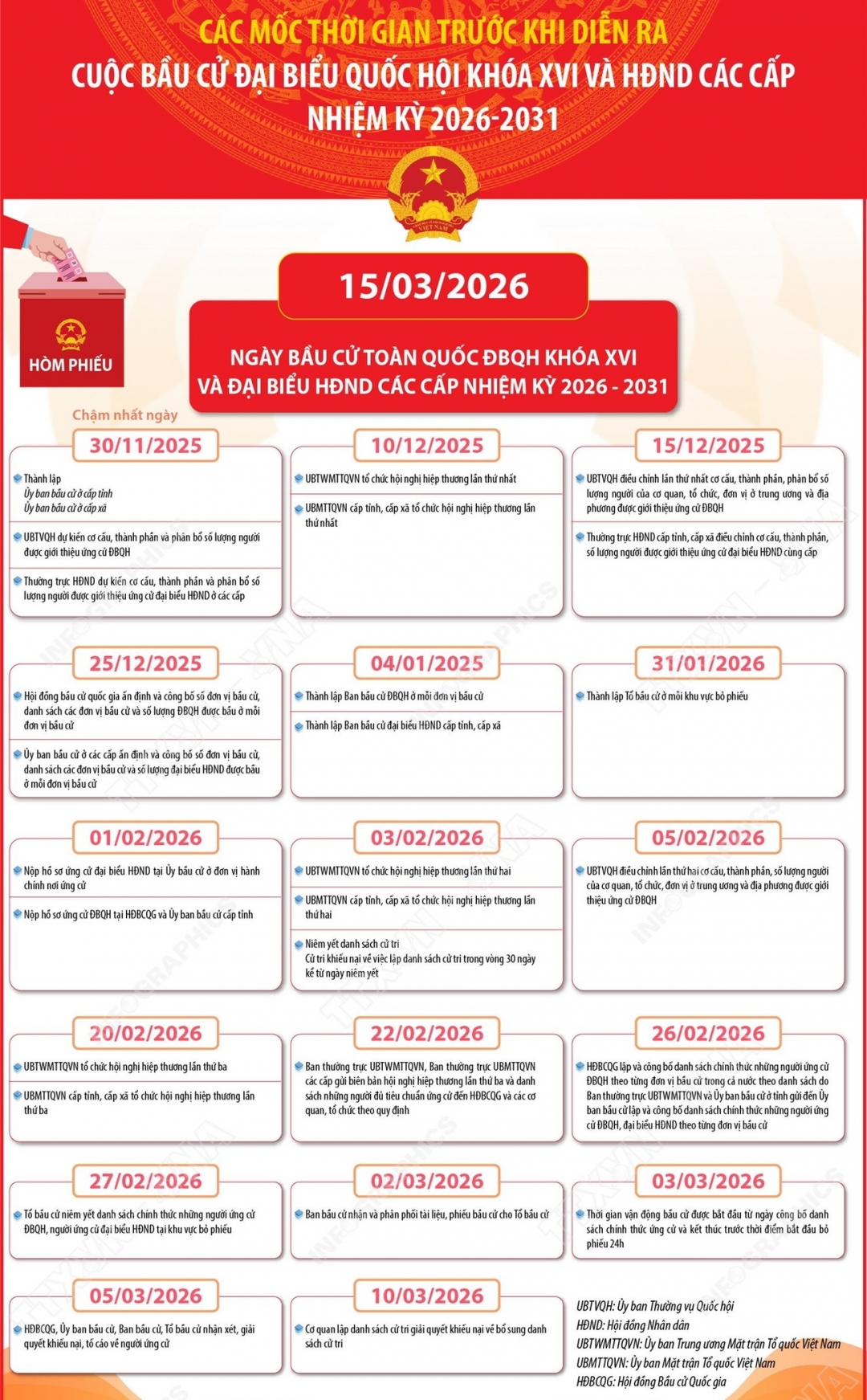 15/3/2026 là Ngày toàn dân đi bầu cử đại biểu Quốc hội khóa XVI và đại biểu Hội đồng nhân dân các cấp nhiệm kỳ 2026 - 2031.