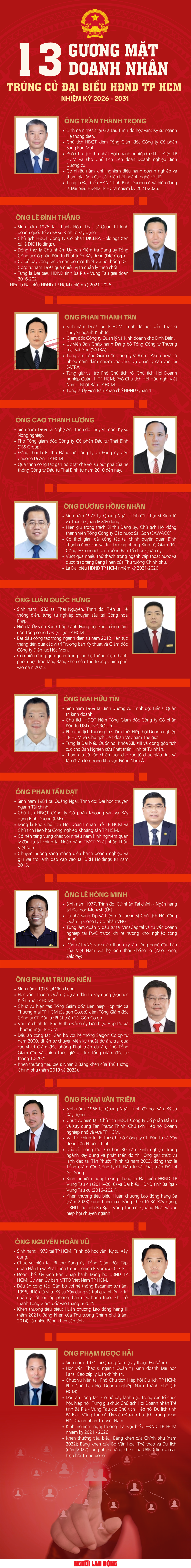 [Infographic] Danh sách những doanh nhân trúng cử Đại biểu HĐND TPHCM nhiệm kỳ 2026 – 2031