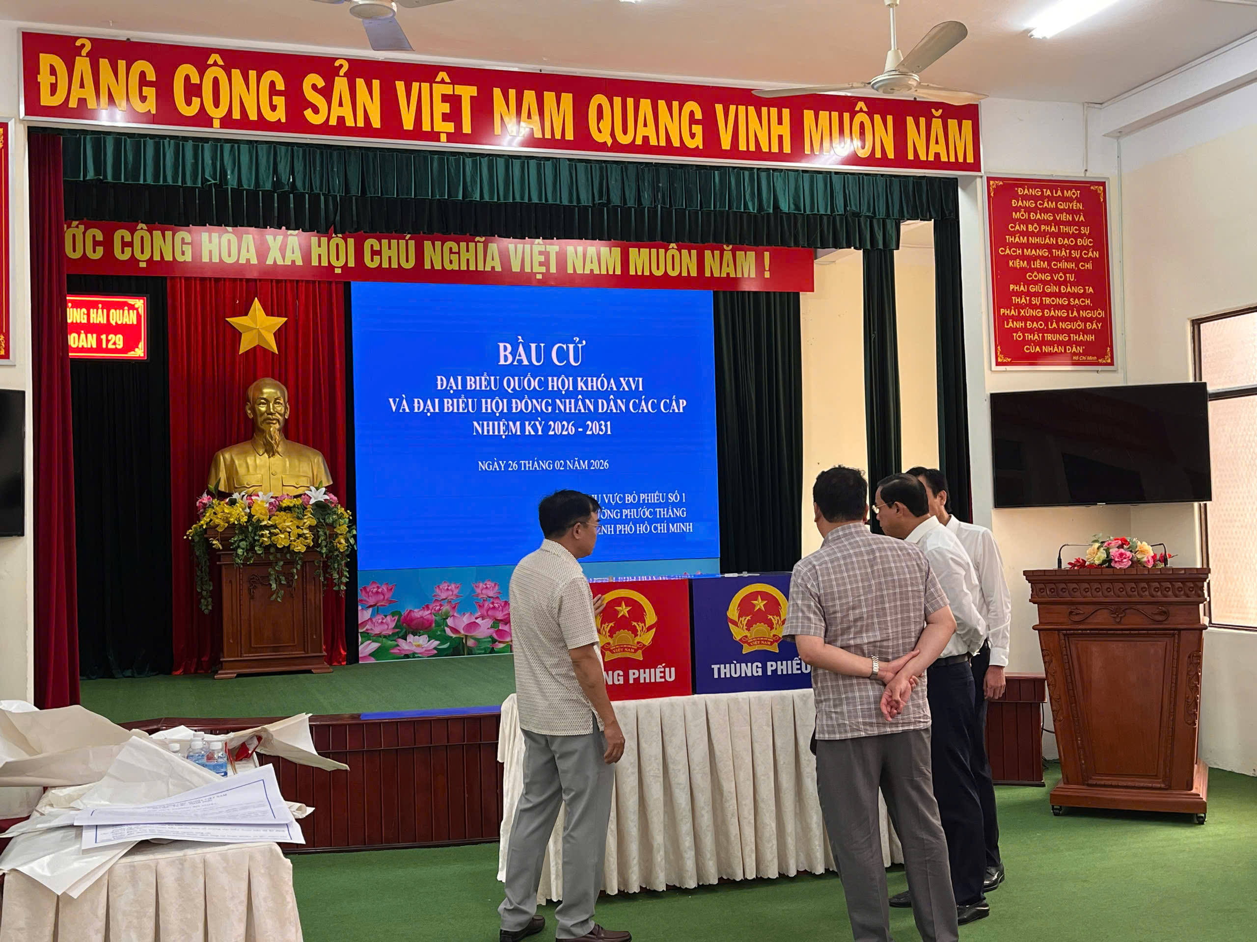 Sáng ngày 22/02/2026, ông Nguyễn Văn Thọ, Ủy viên Ban Thường vụ, Phó Chủ tịch Thường trực Hội đồng nhân dân Thành phố, Phó Chủ tịch Thường trực Ủy ban bầu cử Thành phố đã tiến hành khảo sát công tác chuẩn bị tổ chức bầu cử sớm tại 04 khu vực bỏ phiếu trên địa bàn phường Phước Thắng, phường Tam Thắng và xã Long Sơn.
