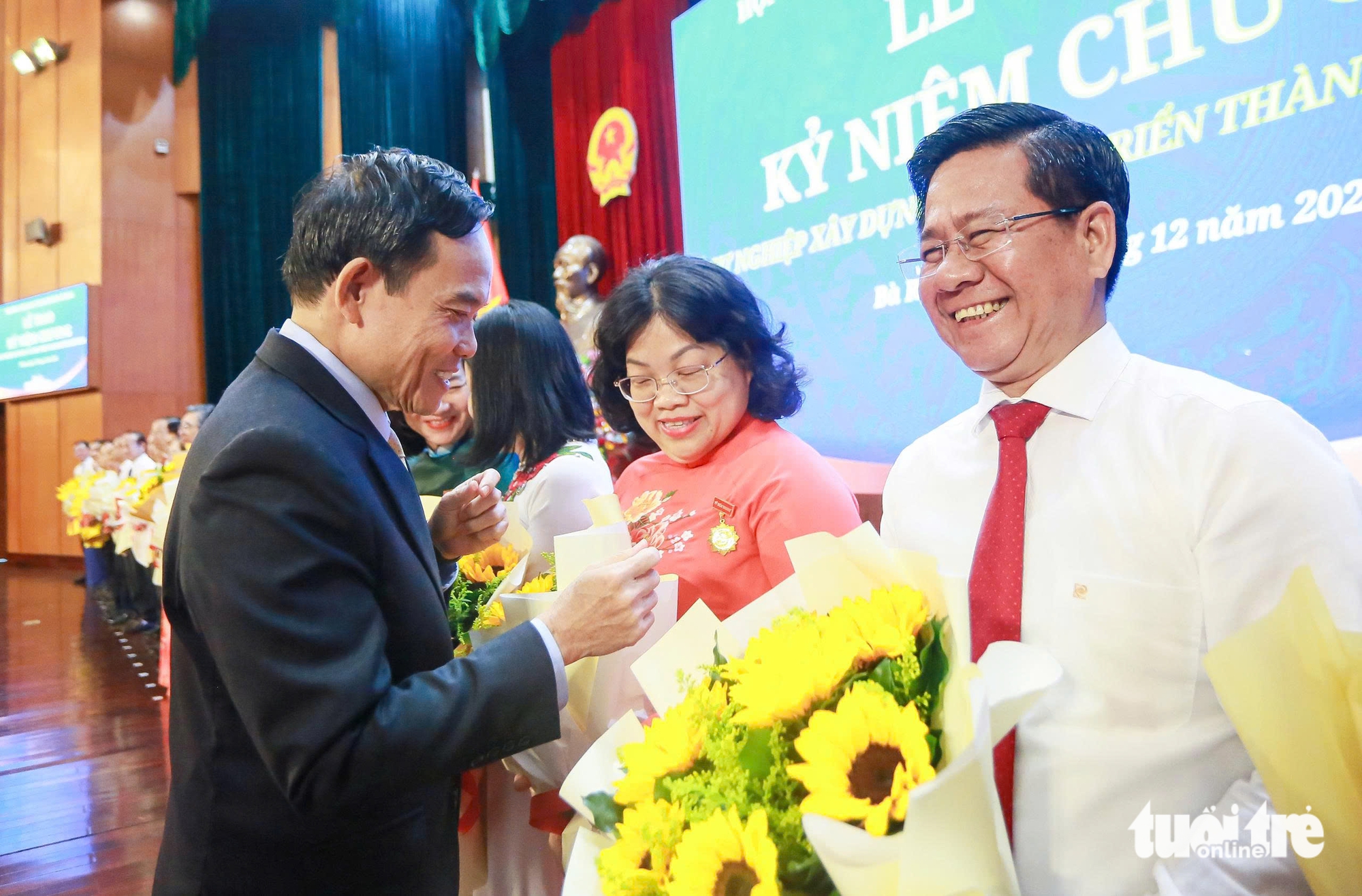 Lãnh đạo Thành ủy TP.HCM trao kỷ niệm chương, tặng hoa và chụp ảnh kỷ niệm cùng các đại biểu