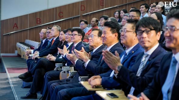 Ảnh tư liệu 3,4: Đoàn lãnh đạo tỉnh Yamaguchi, Nhật Bản đến thăm và làm việc tại Trường Đại học Quốc tế Miền Đông