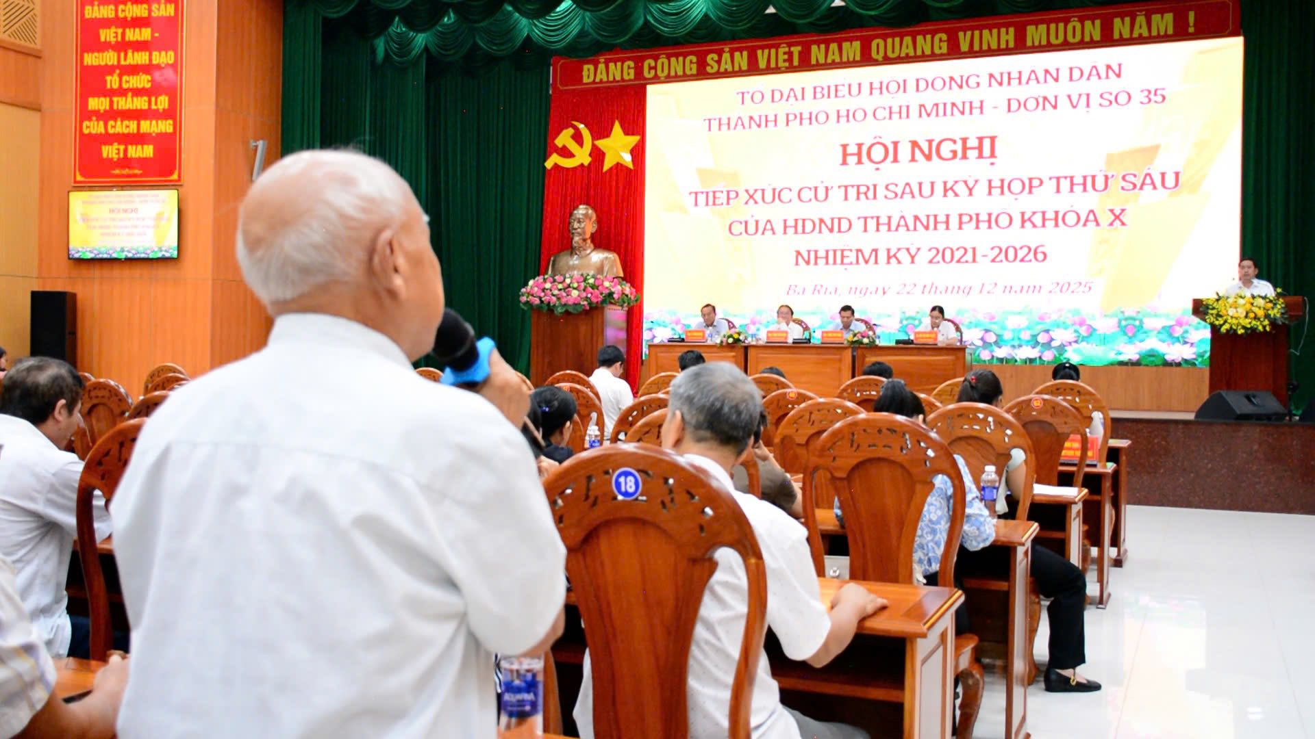 Chiều ngày 22/12, tại phường Bà Rịa, Tổ đại biểu HĐND thành phố Hồ Chí Minh – đơn vị số 35, gồm: ông Trần Văn Tuấn - Ủy viên BTV Thành ủy, Phó Chủ tịch HĐND Thành phố; ông Trần Tuấn Lĩnh – Ủy viên BTV Thành ủy, Bí thư Đảng ủy phường Bà Rịa; bà Hồ Thị Ánh Tuyết – Thành ủy viên, Phó Bí thư Thành đoàn Thành phố Hồ Chí Minh; ông Lê Hồng Ngọc - Nguyên Phó Chủ tịch UBMTTQ Việt Nam tỉnh BRVT, đại biểu HĐND Thành phố, đã có buổi tiếp xúc với cử tri 03 phường: Bà Rịa, Long Hương và Tam Long sau Kỳ họp thứ 6, HĐND Thành phố khóa X, nhiệm kỳ 2021-2026.