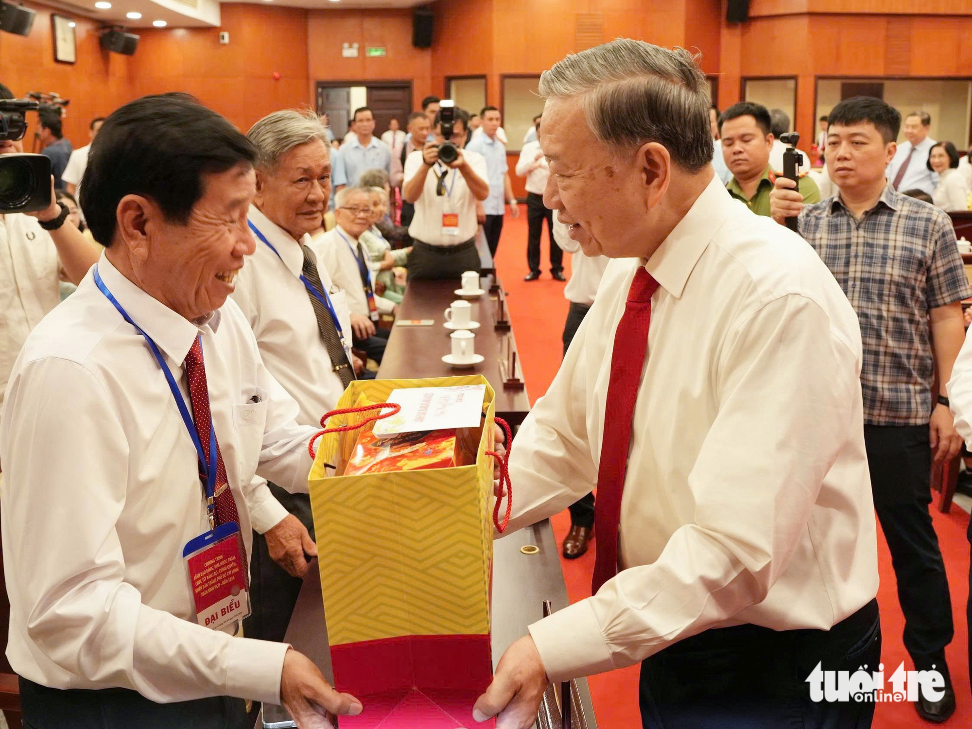 Tổng Bí thư Tô Lâm tặng quà cho Đảng bộ, chính quyền và nhân dân TP.HCM - Ảnh: TTXVN