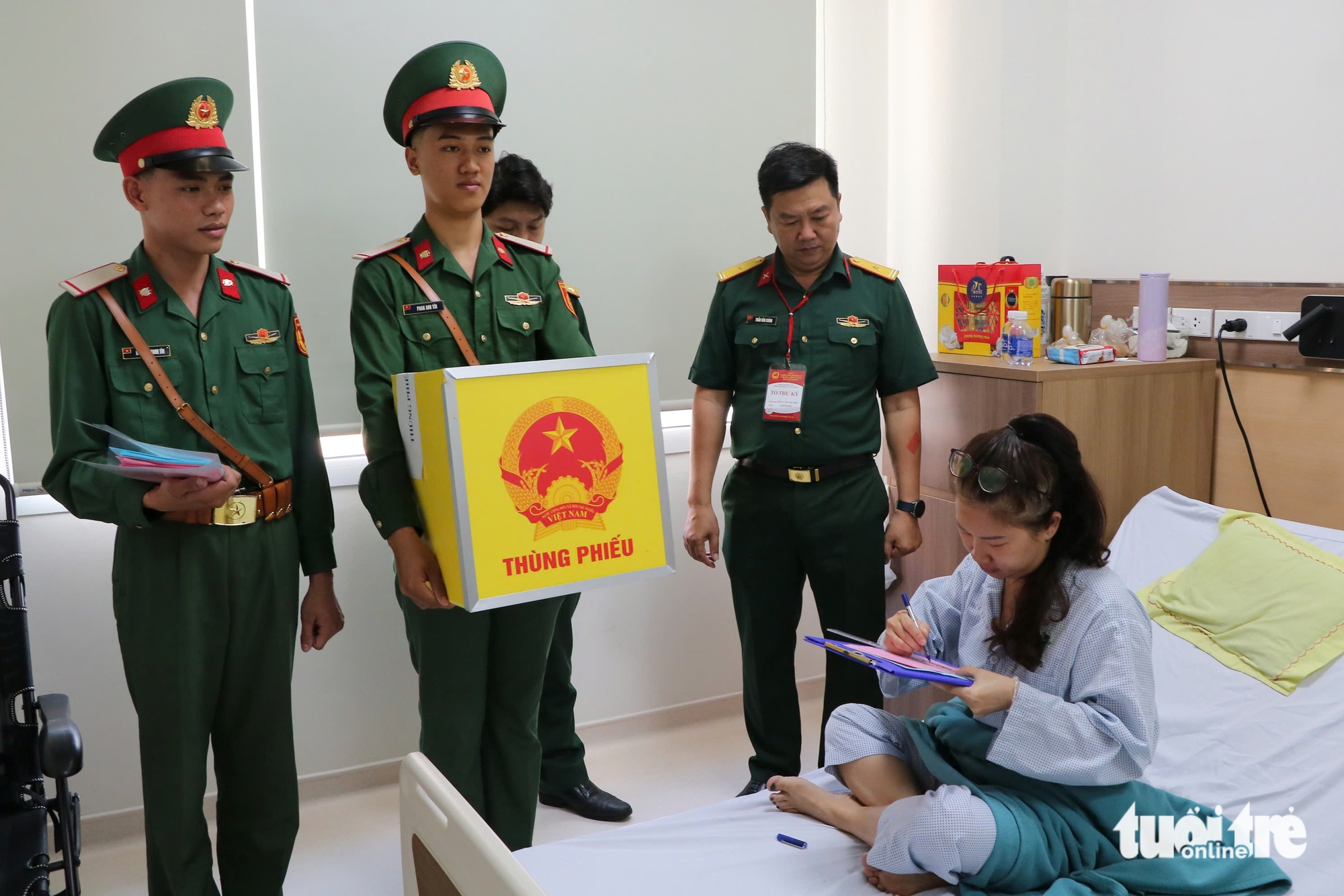 Tại Bệnh viện Quân y 175, thùng phiếu lưu động được mang đến tận khoa, phòng cho các bệnh nhân điều trị nội trú thực hiện quyền bầu cử.