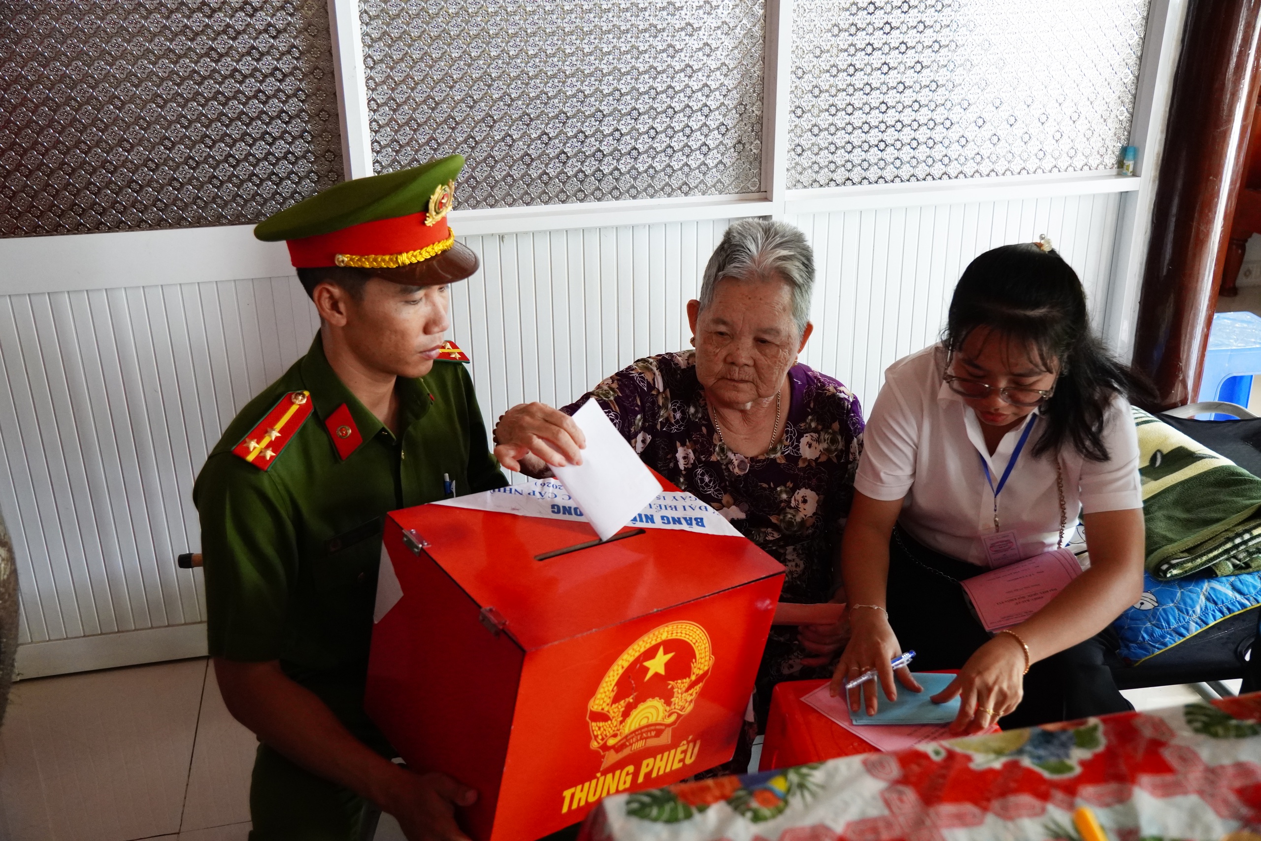 Để hỗ trợ những cử tri đặc biệt (người già yếu, bệnh nhân...), các địa phương đã triển khai lực lượng lưu động, đem thùng phiếu phụ tới tận nhà, tận bệnh viện để hỗ trợ.